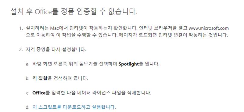 Mac용 Office를 설치하거나 정품 인증할 수 없는경우 - Microsoft 지원